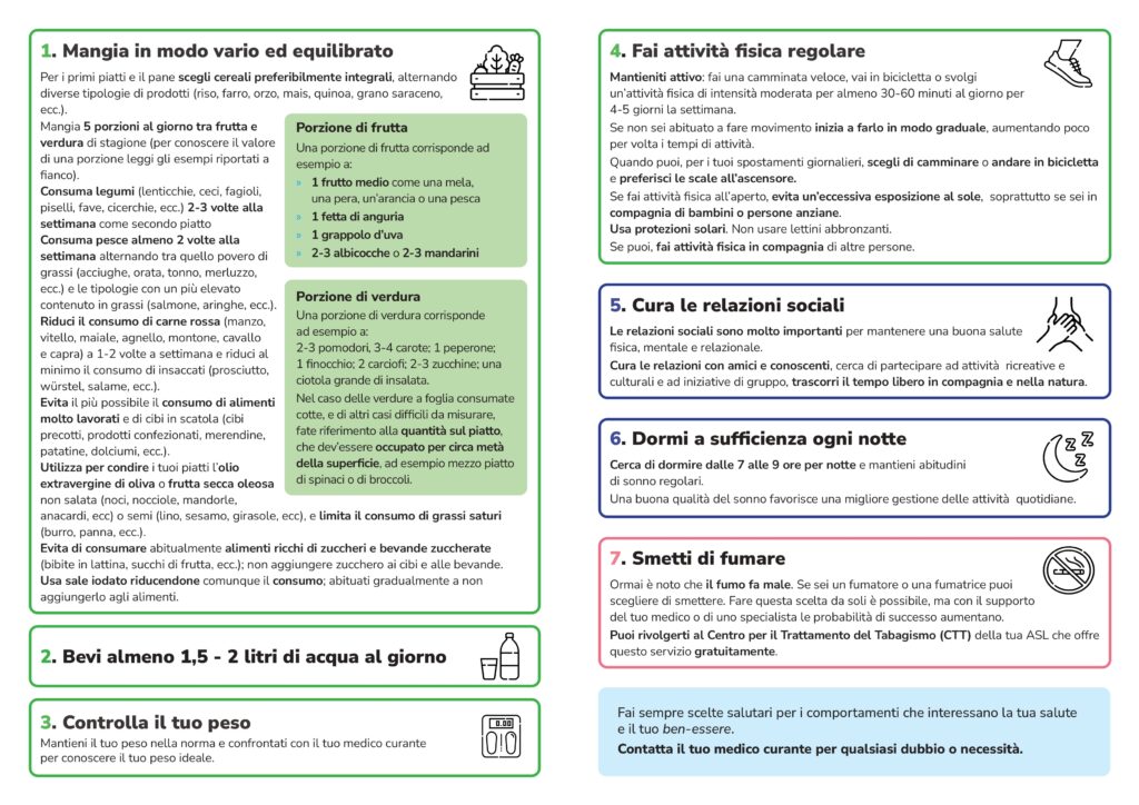 - la pagina dedicata sul sito della Regione Piemonte (https://www.regione.piemonte.it/web/temi/sanita/prevenzione/dieci-raccomandazioni-per-uno-stile-vita-salutare)